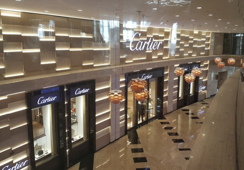 Gli interni sono decisamente moderni e raffinati al tempo stesso e vi sono negozi di lusso delle marche più prestigiose come Cartier,Gucci,Fendi,Luis Vitton... dove è inserita la Galleria N2N nel Podium 2 sede del nostro evento, nel pieno centro di Abu Dabhi la capitale degli Emirati Arabi Uniti dove il lusso è d'obbligo